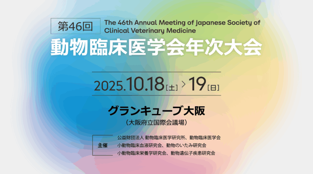 第46回動物臨床医学会年次大会に出展いたします。 2025.10.15未分類 第46回動物臨床医学会年次大会に出展いたします。 日時:2025 年 10⽉ 18 ⽇(⼟)〜10⽉ 19 ⽇(⽇) 会場: グランキューブ大阪 (大阪市北区中之島5-3-51) URL:https://pub.confit.atlas.jp/ja/event/dourinken2025 ご希望の方にサンプルとして商品一本をプレゼントさせて頂きます。ご興味のある方は是非お立ち寄りください。 関連 未分類